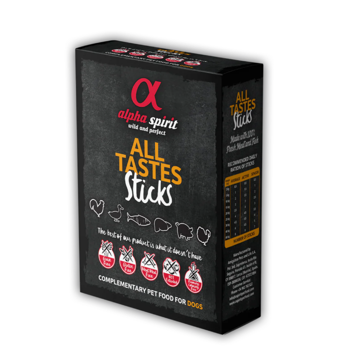 Los STICKS para perros ALPHA SPIRIT están hechos con ingredientes naturales. Una recompensa sinónimo de calidad de vida para su perro. Fácil de manejar y conservar.